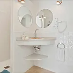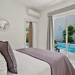 Η βίλα αποτελείται από 3 υπνοδωμάτια που διαθέτουν πουπουλένια μαξιλάρια και λευκά είδη Περιλαμβάνει 4 μπάνια με μπιντέ, μπανιέρα και ντους και με σεσουάρ, ρόμπες και πετσέτες.